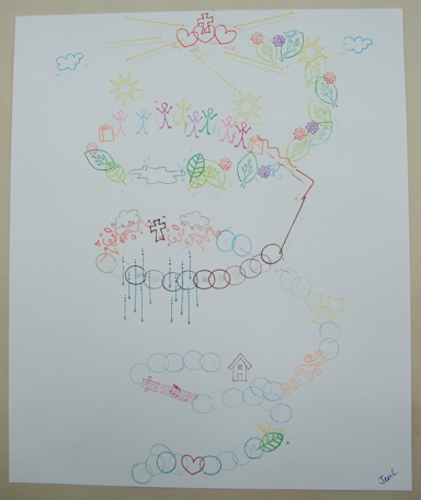 This class offers participants the chance to create a "map" of their faith/life journey using custom designed rubber stamps and a wide variety of ink colors, pens and other media. We will use metaphor as our guide in creating a visual map of where we have been on life's journey...and where we hope God will lead us!